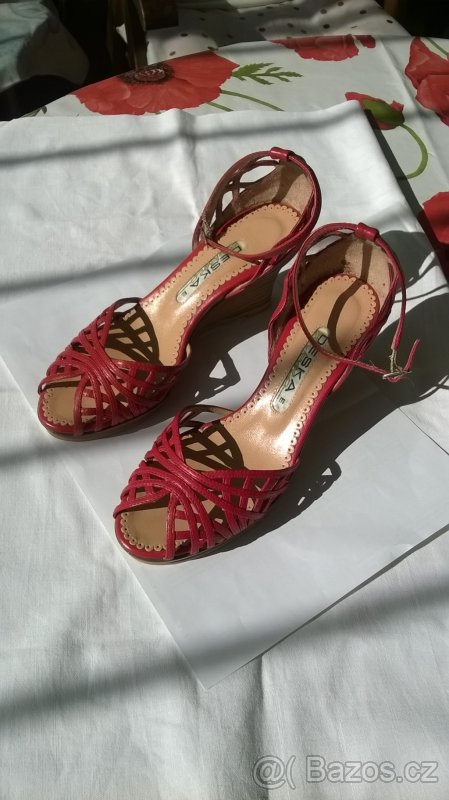 Prodám společenské, dámské letní střevíčky vel.35. Materiál kůže,zánovní, barva červená.