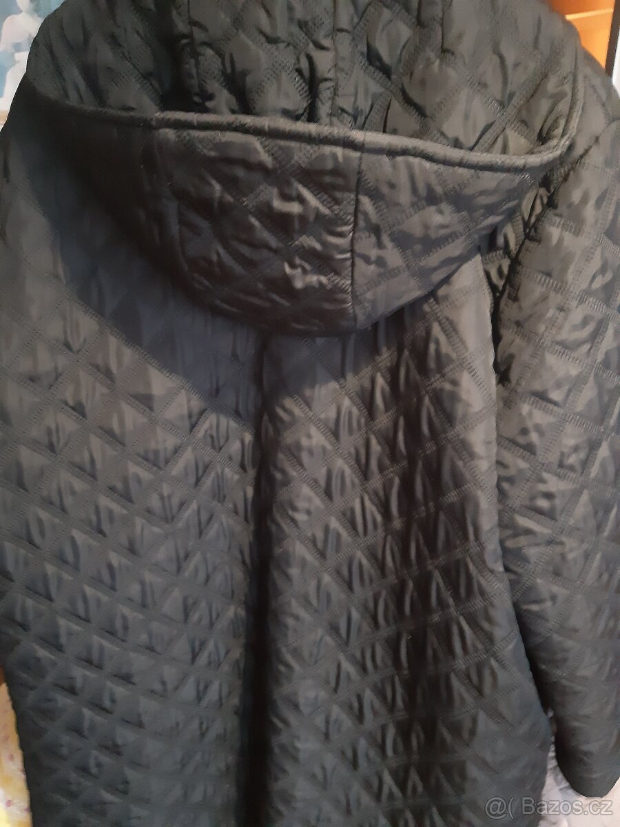 Nabízím dámský flaušový kabát A střihu s kapucí antracitové barvy, prošívanou bundu s odpínací kapucí bordó (hodně prošívané a béžovou, černou prošívanou bundu volného střihu vel 50 - 52.