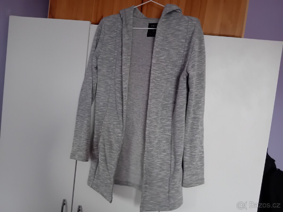 Šedý dlouhý cardigan s kapucí, velikost XS
