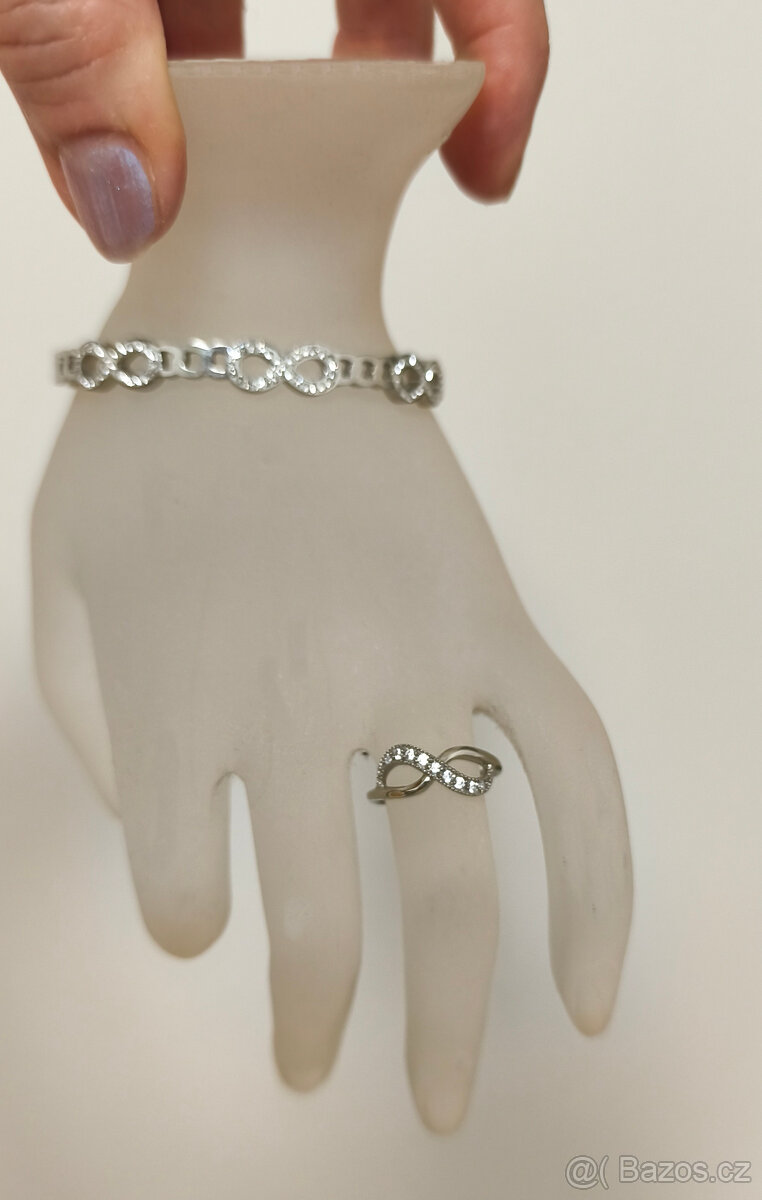 Souprava náramek + prstýnek „Nekonečno“ z chirurgické oceli, osázené zirkony.