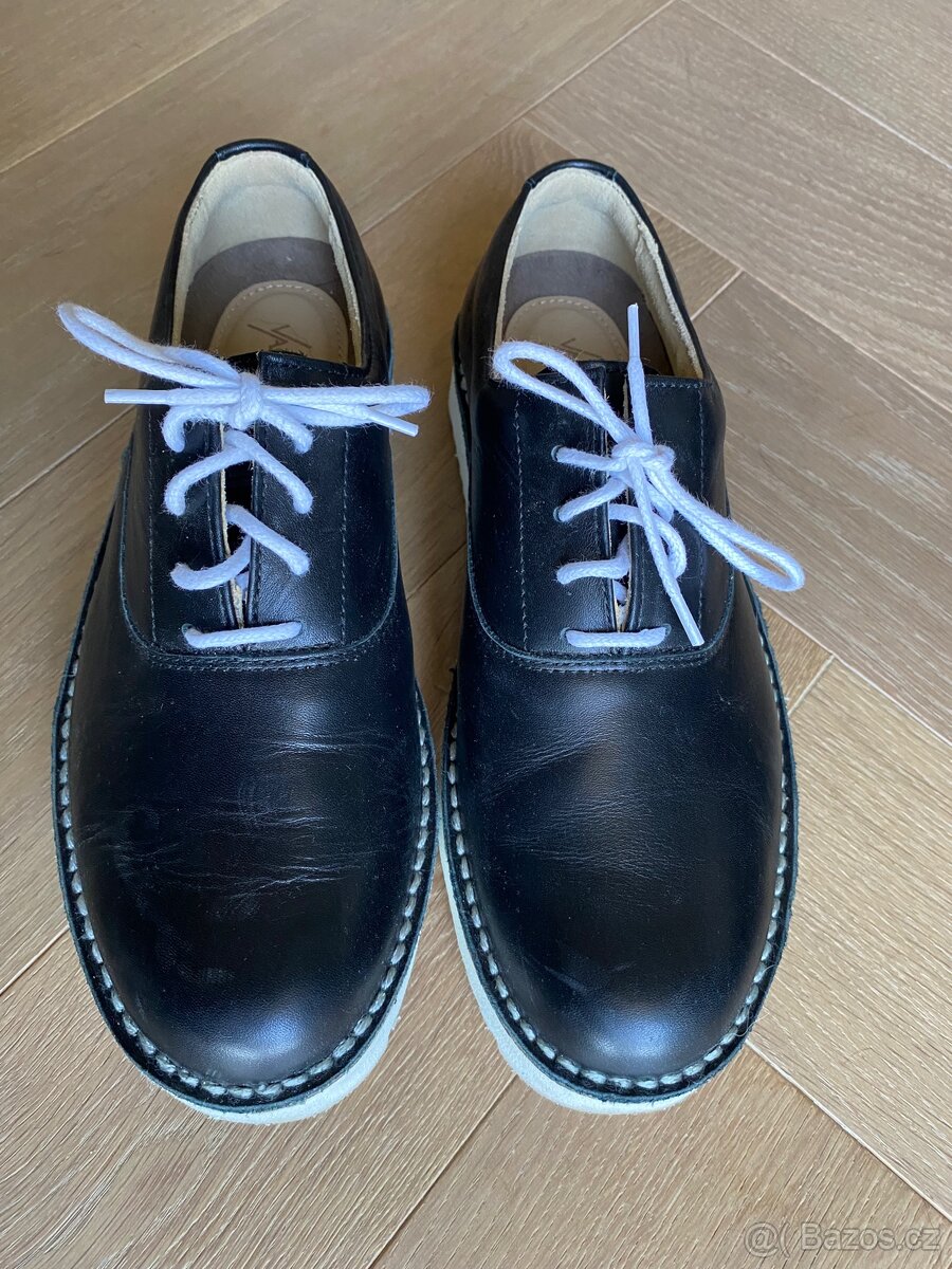 Kožené polobotky ručně vyráběné v České republice. Kupované online, bohužel mi nesedí. Leží ve skříni, na noze jsem je měla jednou. Značka Vasky, Derby Black, vel 38.