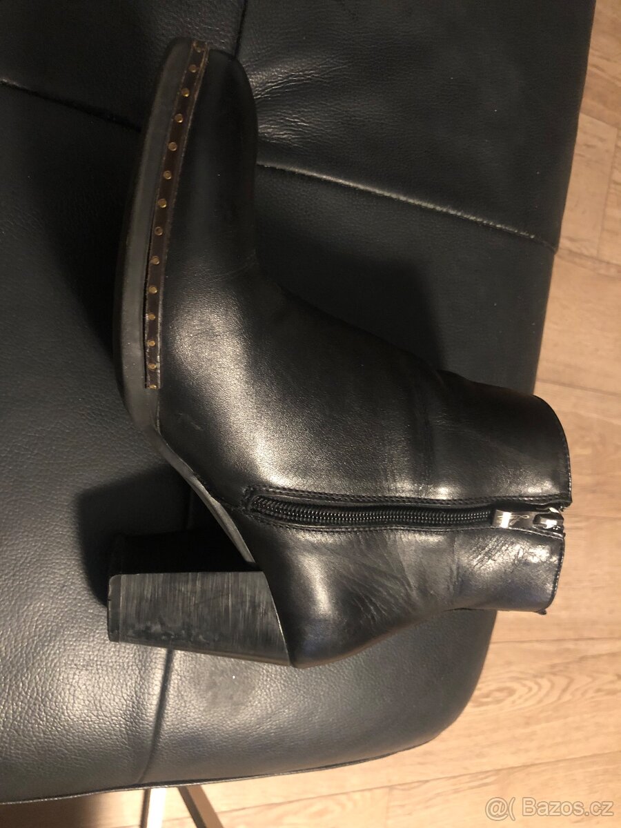 Prodam krasne, málo nosene kožené kotníčkové kozačky. Velikost 40. Uvnitř lehce vyteplene. Krásná kůže, zdobení na zadní části i podél cele boty.Zip pro pohodlne obouvani, z venkovní strany zip ozdobný. Značka Riker.