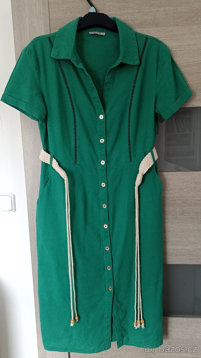 Nošené šaty v dobrém stavu. Materiál len/viskoza, vel 36-38. Míry přes prsa 47cm, v pase 41cm. Zn. Orsay