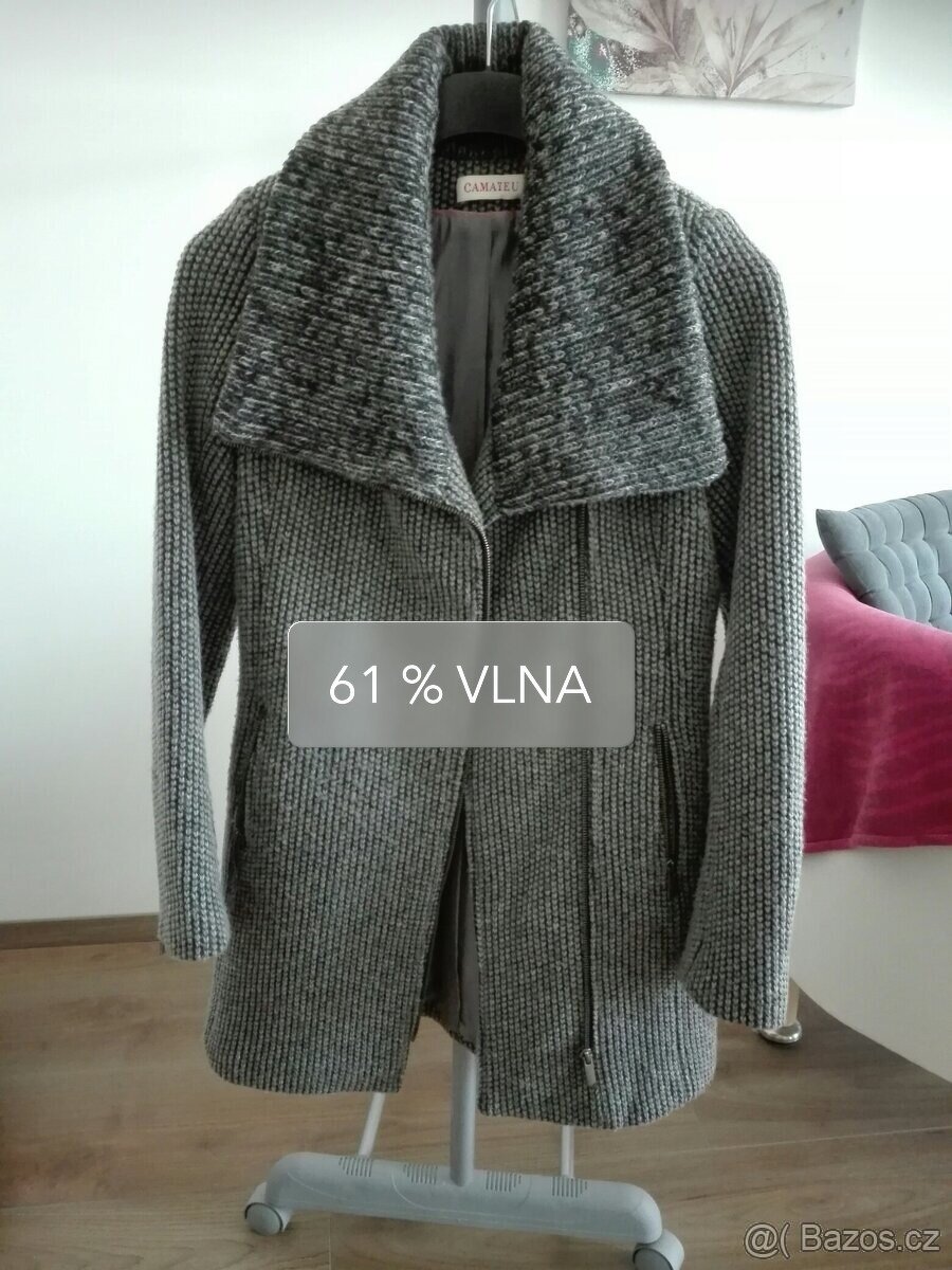 dámský vlněný značkový kabát - vel.38 - [12.12. 2025]zn. DanWear lehounký jako pírko, ale teplý - 51% vlna, 49% polyester