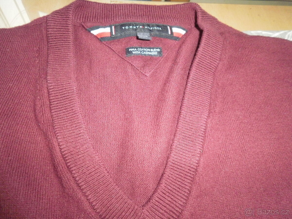 Prodám pánský svetr zn.Tommy Hilfiger, barva vínová, u krku do V, vel. 3XL/T, viz. foto