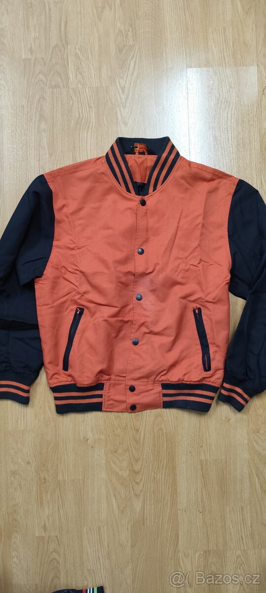 Lehká bunda s náplety, oranžová s černými rukávy. Vel. L.