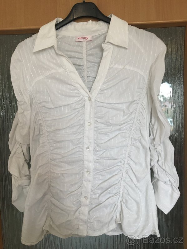 Nabízím dámskou společenskou bílou košili Orsay. Velikost 38, v super stavu.