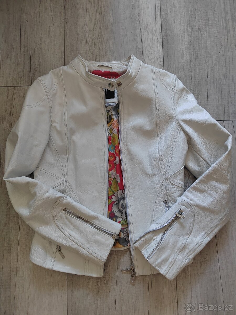 Prodám dámskou málo nošenou koženou bílou bundu značky Gipsy. V super stavu,jeden malý nepatrný flíček na zipu viz. foto