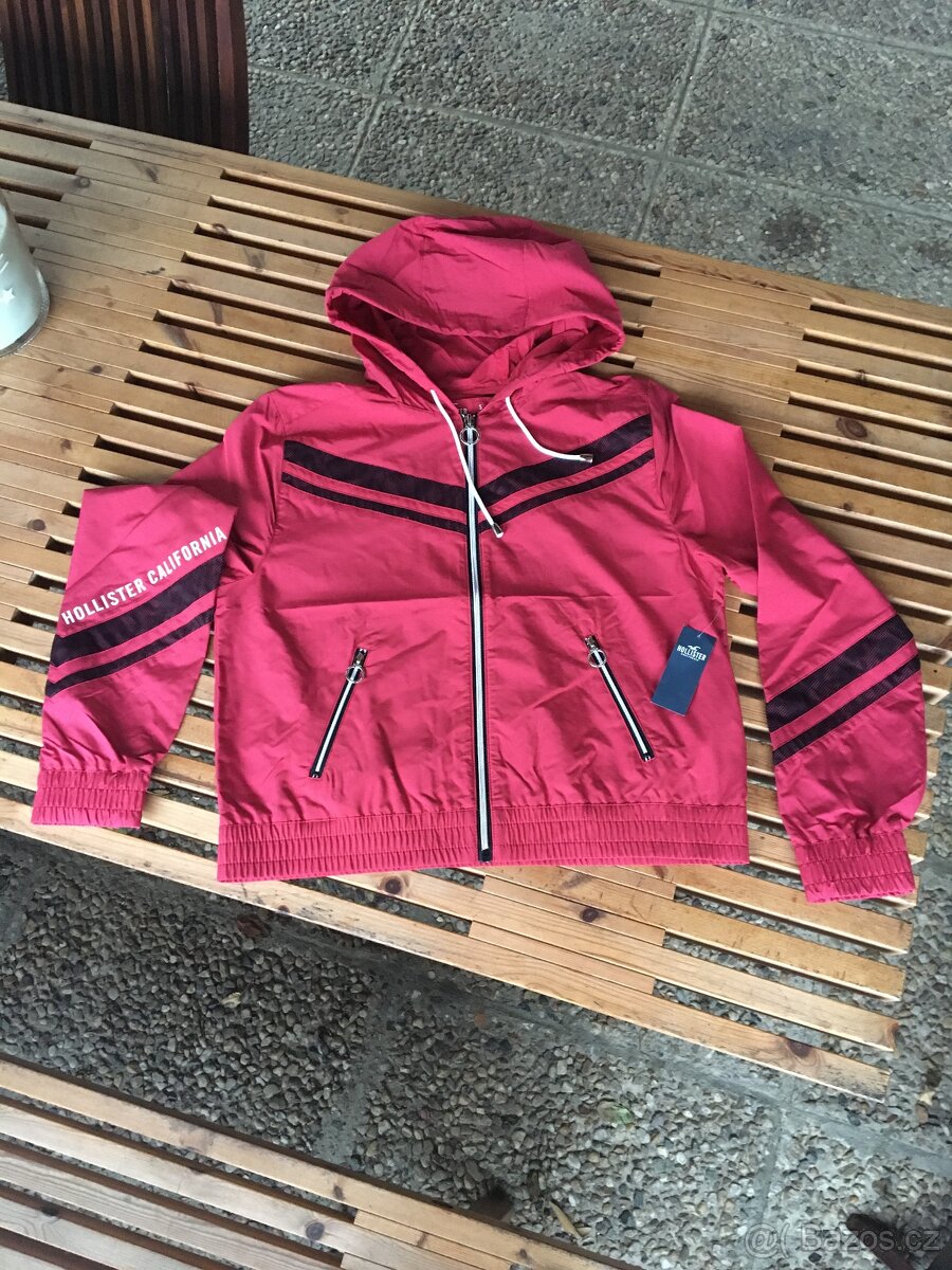 Nová, s visačkou. Pohodlná, lehká sportovní bunda, odolná větru a vodě. S kapucí, bez podšívky, zapínání a kapsy na zip, střih do pasu. Červená barva (hezká, matná, není vykřičená), detaily z černé síťoviny, na rukávu tištěné logo značky.