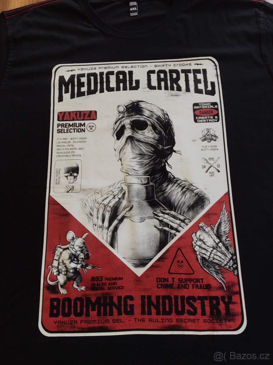 Prodám nové tričko značky Yakuza Premium. Barva černá s červeným obšitím v horní části okolo krku, velikost XXXXL (š. 68 cm, d. 86 cm). Preferuji telefonický kontakt.