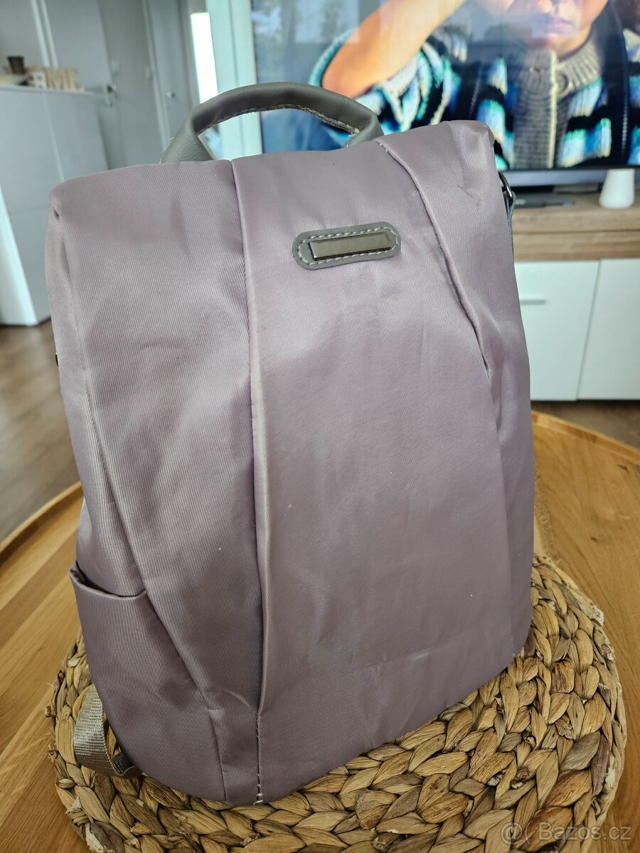 Batoh je nový, nenošený. Rozměry 28 x 12 x 33 cm. Po bocích místo třeba na láhev s pitím, uvnitř také jedna kapsička na zip. Plní se zezadu, tím se vylučuje, že vám ho, třeba v MHD, někdo nenápadně otevře a ukradne peněženku, doklady atd. Barva je taková měnivá, světle šedá s nádechem khaki. Není do růžova!!