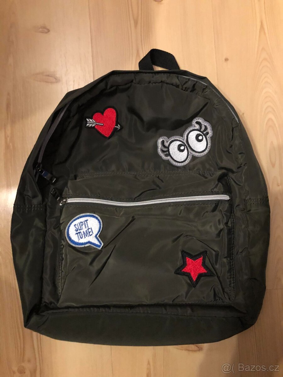Prodám minimálně nošený khaki batůžek s nášivkami.