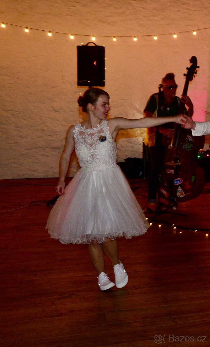 Svatební šaty s krajkovým živůtkem – vel. 44, 1x nošené - [21.12. 2025]Nabízím nádherné svatební šaty s krajkovým živůtkem a lehkou splývavou sukní, velikost 44. Šaty byly pouze jednou nošeny a jsou ve velmi dobrém stavu. Délka zkrácena na postavu cca 165 cm (včetně podpatků).