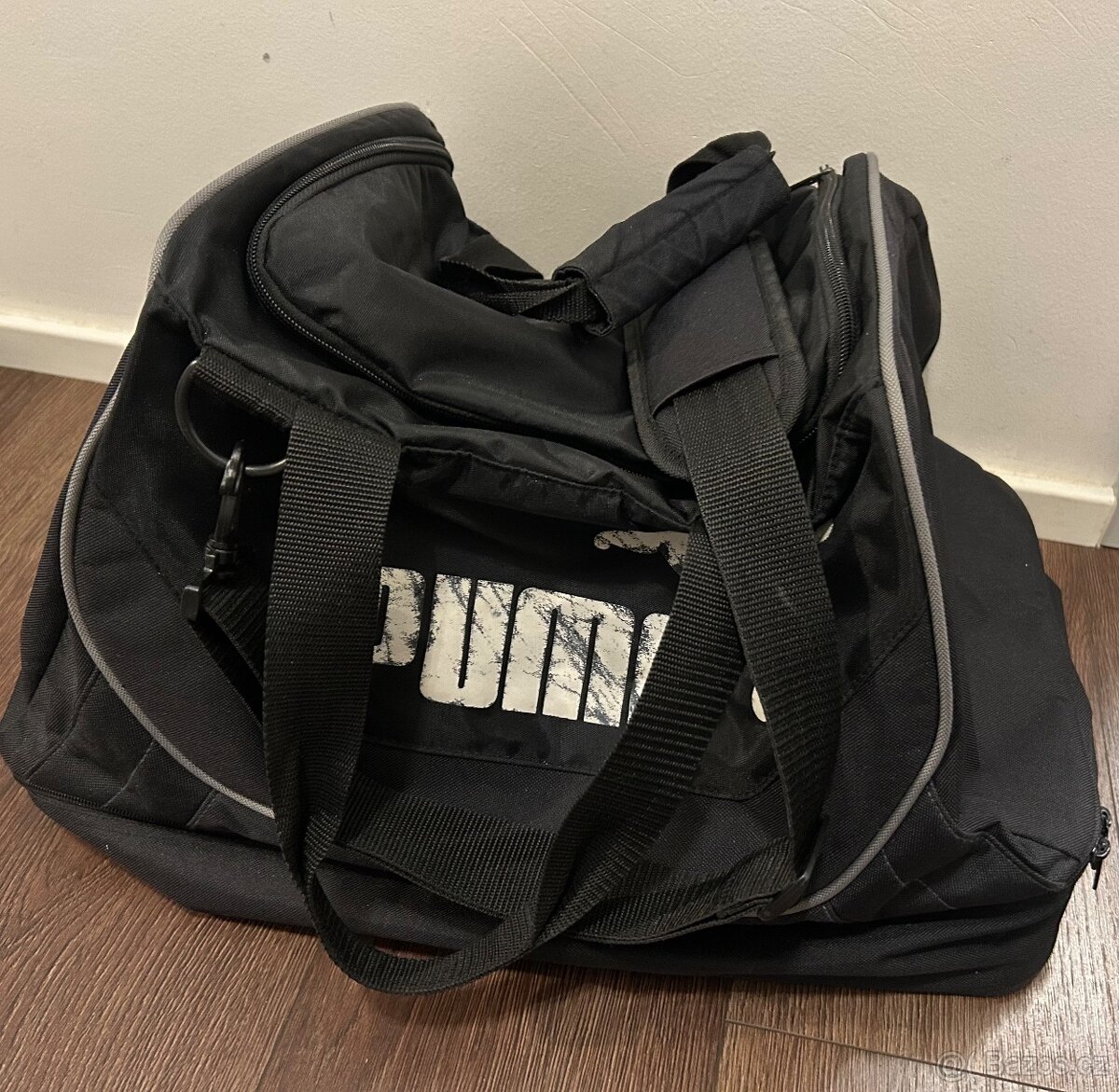 Černá sportovní taška značky Puma. Málo používaná, max. 5 krát, bez vad, pouze se sloupává barva nápisu stářím. Rozměry dna: 31x52 cm, výška 39 cm. Osobní převzetí v Praze nebo zaslání Zásilkovnou. Prosím dotazy pouze na mail: steiner99@email.cz.