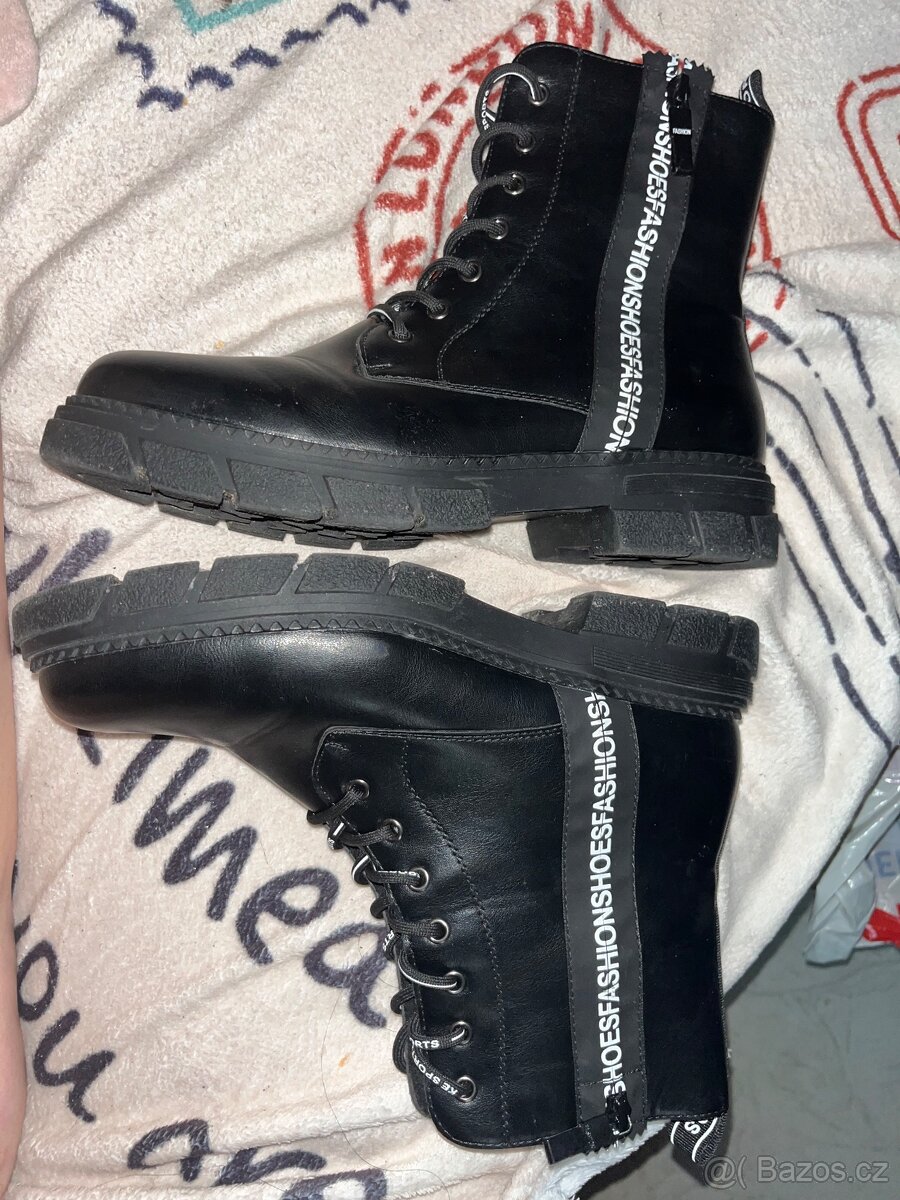 Prodám černé stylové boty (kanady) s nápisem. Jsou ve velikosti 41.