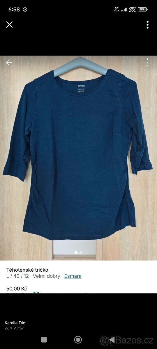 Prodám těhotenské oblečení, cena a velikost u fotek.
