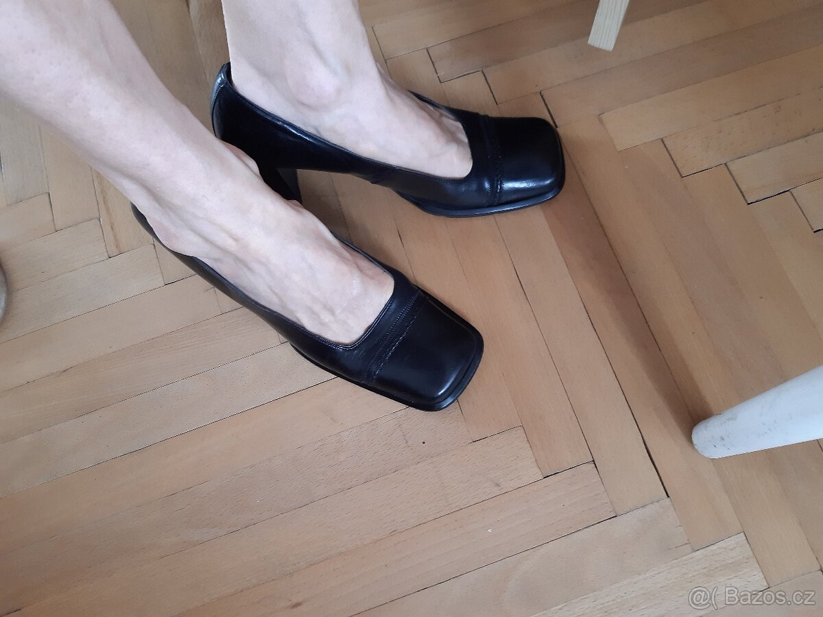 Černé kožené lodičky vyrobeny v Italii, s dekorací. Jsou pohodlné a ve velmi dobrém stavu, viz fotky. Běžně mám velikost nízkých bot 38.