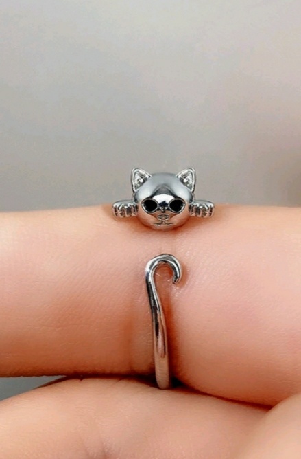 Nový dámský stříbrný prsten prstýnek 925 nastavitelný kočka