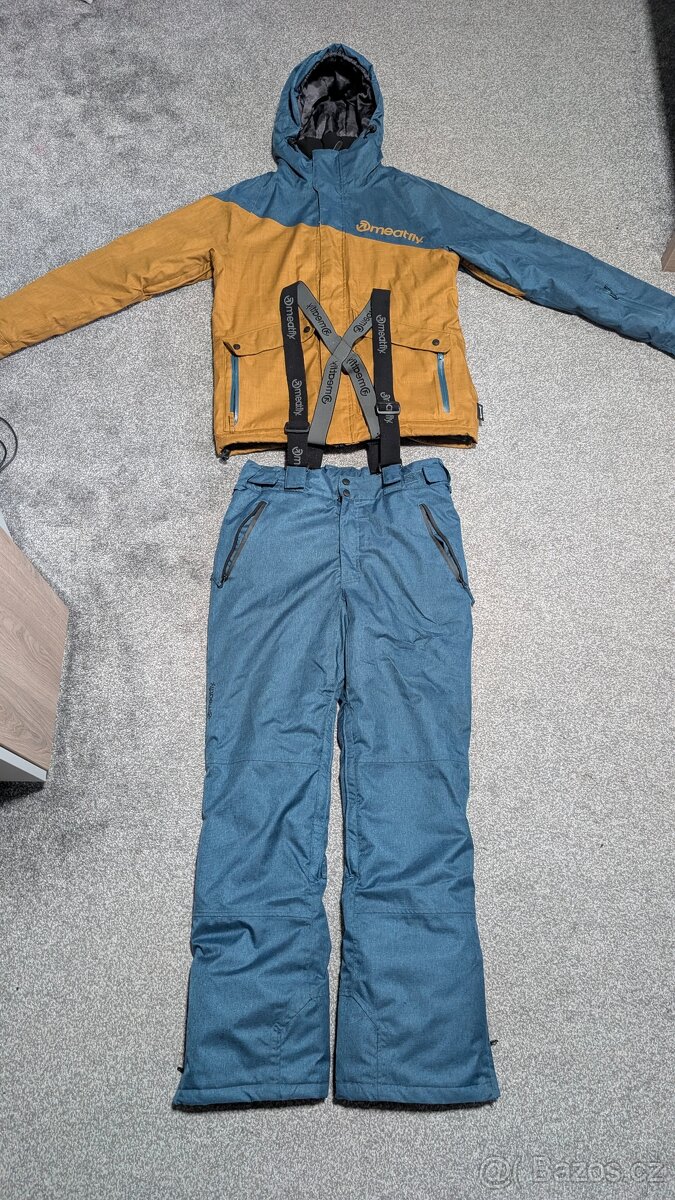 Souprava používaná cca 4 sezóny. Nikde není roztržená nebo natržená. Jediná drobnost je skvrna na zadní straně na levé části kalhot, který možná pủjde vyprat(nevyzkoušeno).Soupravu jsem ochoten prodat i jednotlivě