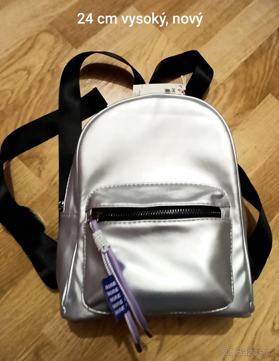 Prodám malý stříbrný batůžek, výška 24cm, nový.