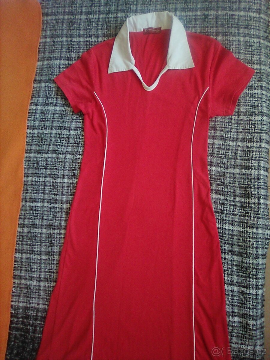 Prodám šaty CASA EMILIA sportovního vzhledu, pevný pružný materiál: 65% bavlna, 35% polyester. Délka vepředu od výstřihu 75cm, vzadu od límečku 95cm, obvod hrudníku 80cm, pasu 75cm, boků 80cm, dolní části 107cm.