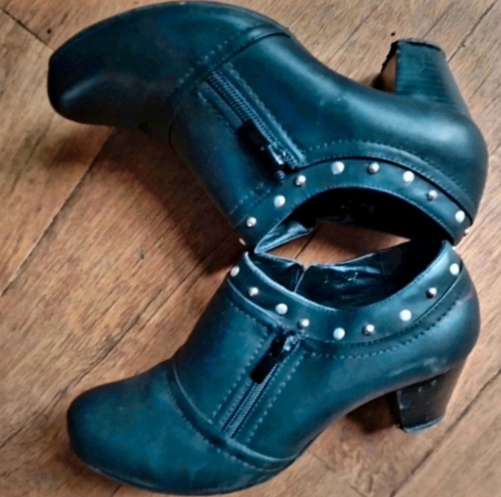 Dámské kožené kotníkové boty na podpatku - [8.12. 2025]Černé kožené kotníkové boty,velmi hezké,jenom na podpatku jsou odchliple.vel.38