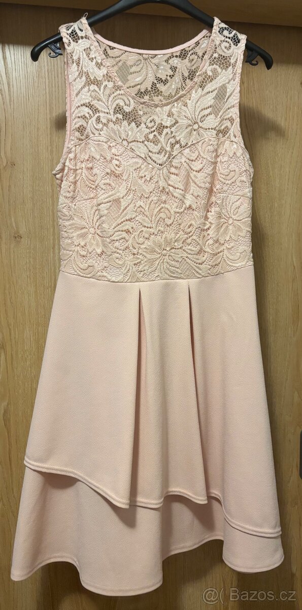Dámské taneční šaty zn. Bodyflirt vel. S/M (sedí větší S), barva světle růžová/meruňková, v pěkném stavu bez vady.