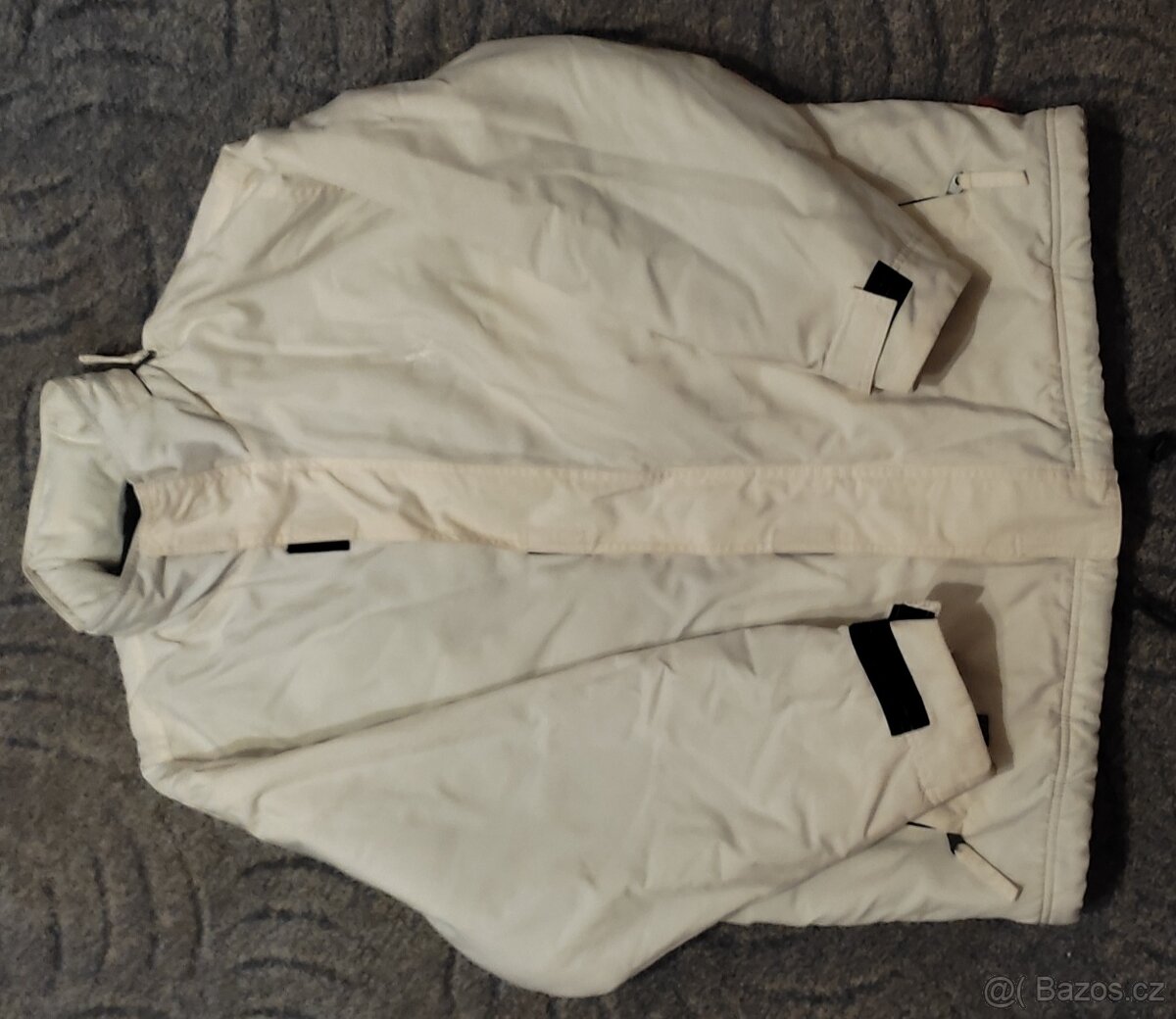Prodám pánskou zimní bundu. Bílá barva. Velikost M. Délka 79 cm, šířka 63 cm. Zateplená, fleecem. Kapuce schovaná v límci. Dobrý stav.
