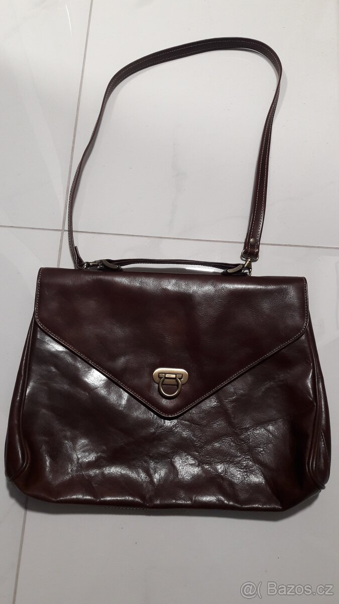 Dámská kožená aktovka s přihrádkama, nepoužitá, z pravé kůže.
