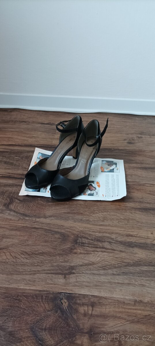 St.Oliver, vel. 39, kožené, černé, podpatek 7cm