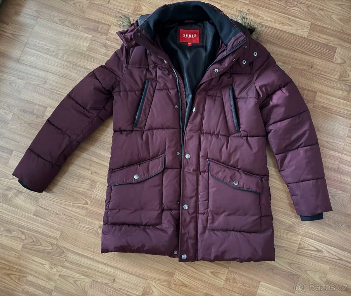 Dámská značková péřová bunda GUESSS s kapucí a kožešinovým límcem,velikost M.Čistá velmi málo používaná.Bez zjevných známek používání.Osobní odběr nebo zaslání není problém.Čistá bez poškození nekuřačka.Více foto včetně rozměrů dle přání.