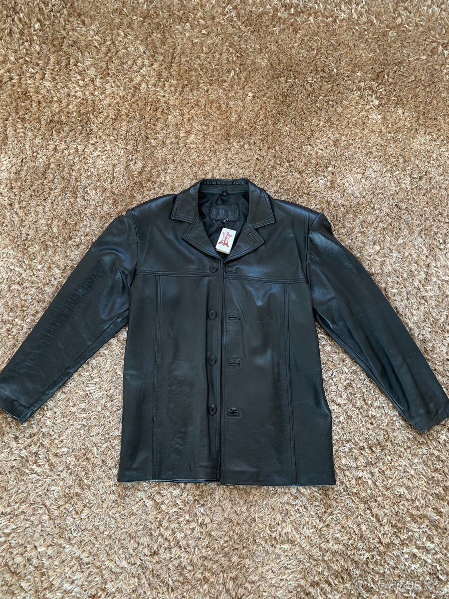 Prodám pánskou koženou bundu - kožené sako (má ramenní vycpávky) ze skopové kůže. Název na štítku "Kožená bunda Ronald". 100% skopová kůže, podšívka 100% polyester. Zapínání na 4 knoflíky. Dvě vnější kapsy, jedna vnitřní náprsní kapsa. Barva černá. Velikost L. Nové, nikdy nenošené včetně originální visačky.