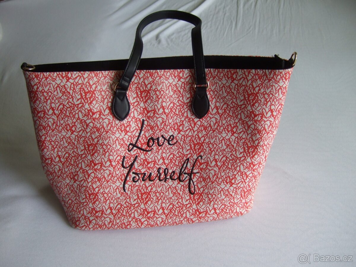 Kabelka se srdíčky značka Baťa. Výška 31 cm, šířka 48 cm a dno 16,5x 31,5 cm. Zapínání na zip. Dá se nosit přes rameno. Stav pěkný, nepoškozená.