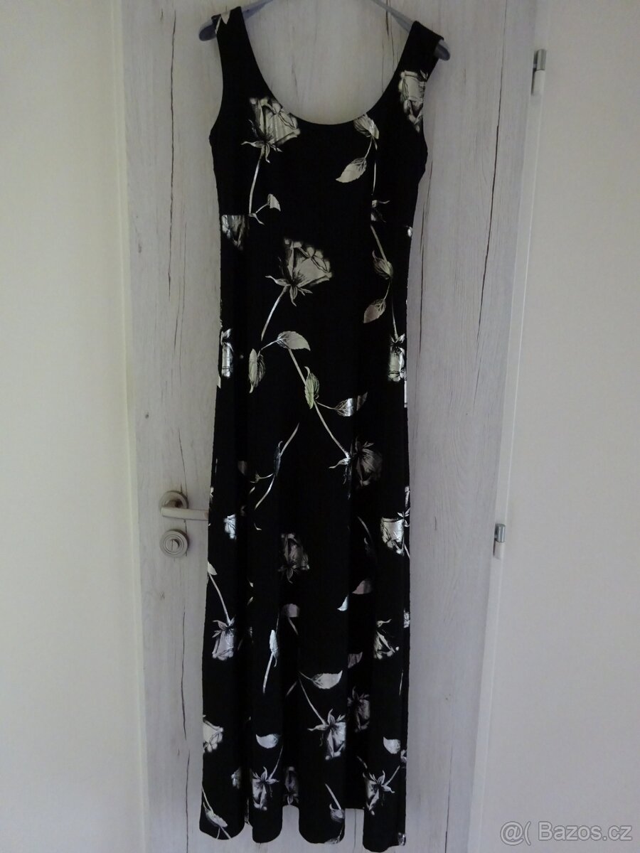 Prodám krásné společenské šaty vel. S, zn. Balumi (krejčovský salón Balumi), černé zdobené stříbrnými růžemi. Délka 140cm, šířka pod prsy 36cm, PC 2.000,- Kč. TOP stav (stejné jsem nepotkala).