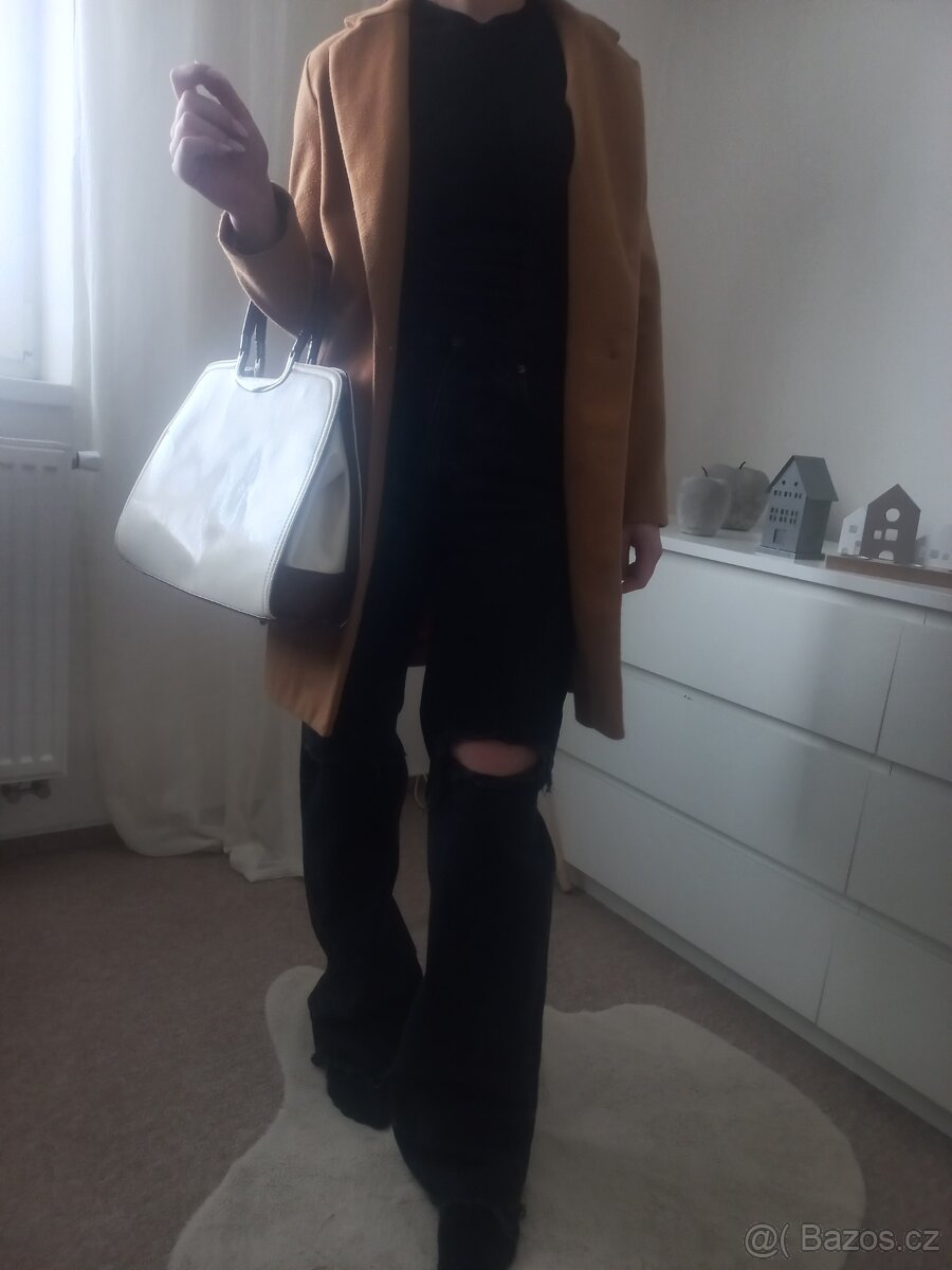 Trhané džíny Zara minimálně nošené ve vel.S. Kabat zn. Cropp ve vel.S nošený minimálně. Kabelka v barvě šampaň a hnědé. Celý set za 700 -