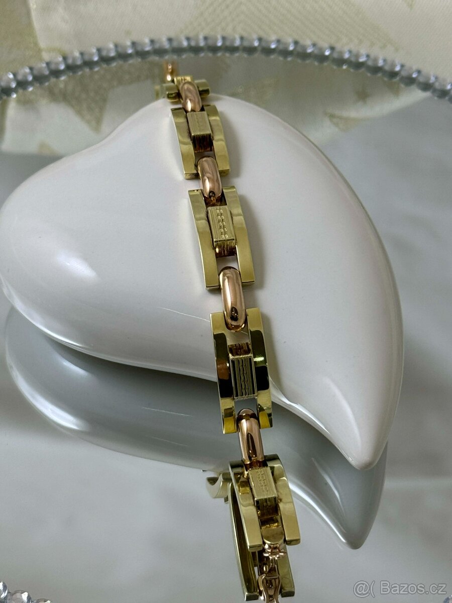 Nabízíme k prodeji zlatý náramek s kombinací žlutého a růžového zlata. Řádně opuncováno. Použité zboží.