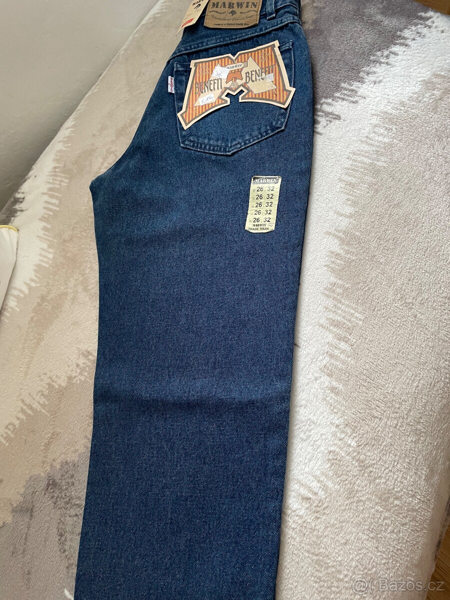 Značka Marwin o velikosti 26/ 32. Pas 70cm a délka 109č. Velmi pěkné, žádné roury . Jsou úplně nové . Původní cena 890,-Kč , dovoz Kanada