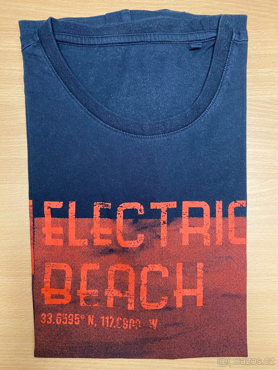 Prodám toto tmavě modré tričko CA se zachovalým potiskem Electric Beach. Velikost nejde určit, ale pocitově je S.