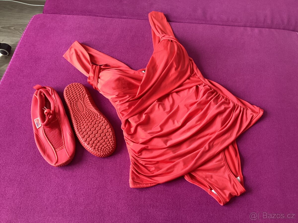 1. Jednodílné plavky, vel.40-42. Zajímavý design, skrývá bříško. 2. Boty do vody, vel.38.