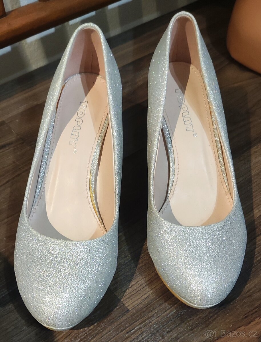Prodám krásné dámské stříbrné lodičky na podpatku, značka Toplay. Nošené velmi sporadicky, jsou ve velmi dobrém stavu. Velikost 36.
