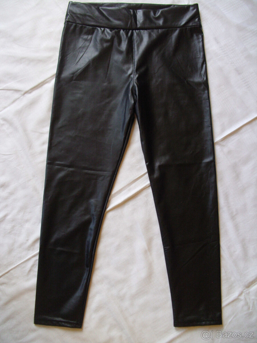 Nenošené, imitace kůže, slabé, pružné, dobře se připůsobí - přiléhavé a pohodlné. Délka nohavic 93/vnitřní 60 cm, pas 2 x 41 cm v klidu.