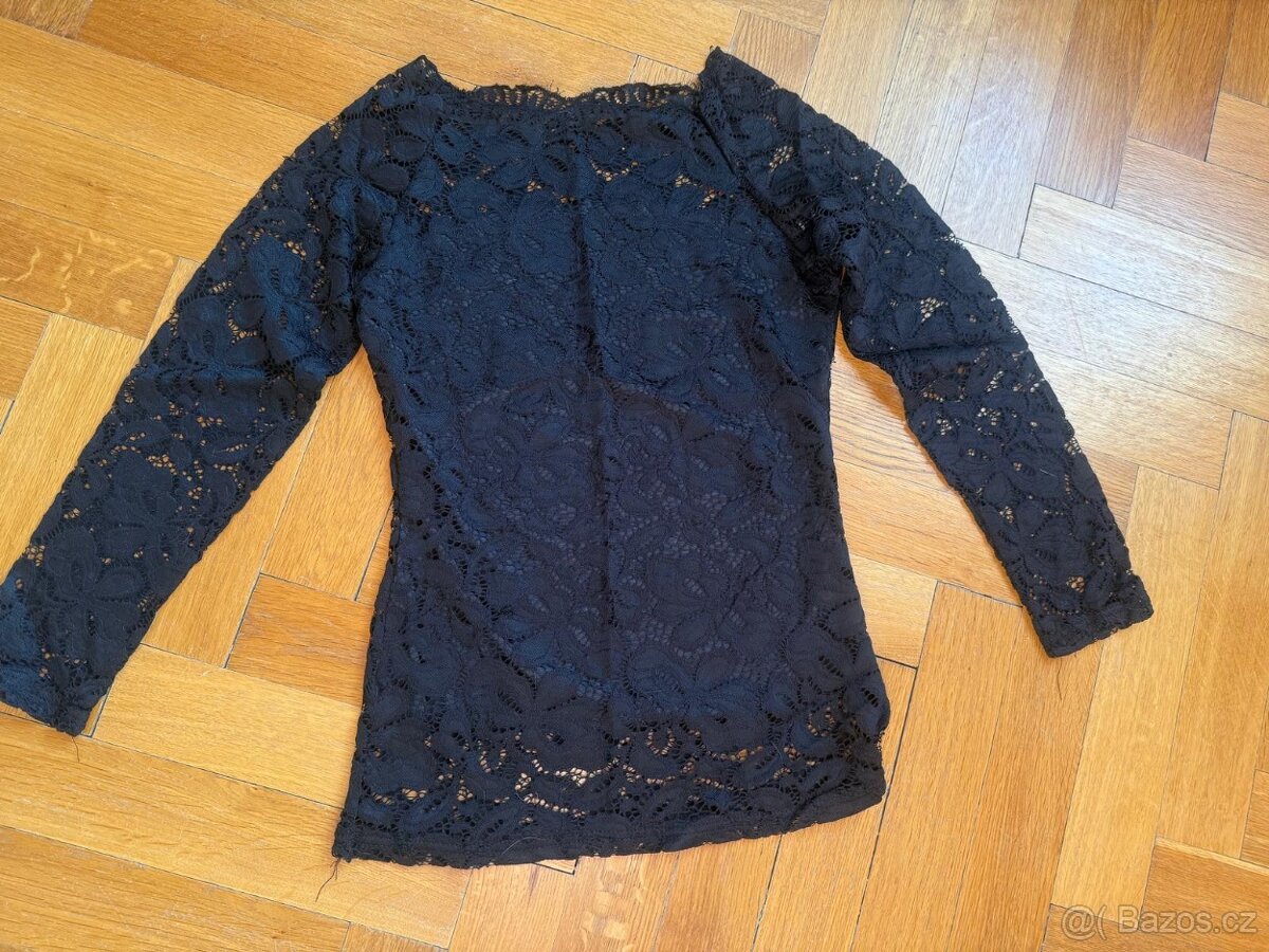 černá krajková elastická halenka vel S/M , přes prsa 76cm, délka 60cm, nenošená