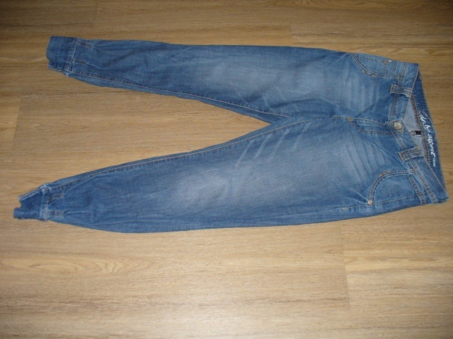 Prodám krásné, tmavě modré rifle, moc pěkná barva. Jde o turecký styl, kdy kalhoty se dole zužují a jsou zakončeny zčásti do gumy a dvou knoflíků. Nošené opravdu párkrát (nesedí mi v pase), tedy skutečně jako nové. Velikost 28/32.Vysoká PC 1399 (po slevě).