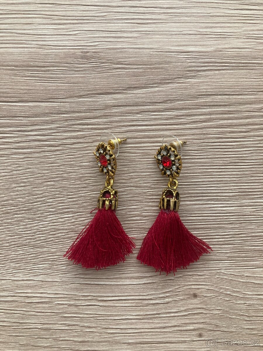 Krásné vínově červené náušnice s třásněmi a kamínky - [2.1. 2026]Krásné vínově červené náušnice s třásněmi a kamínky. :)