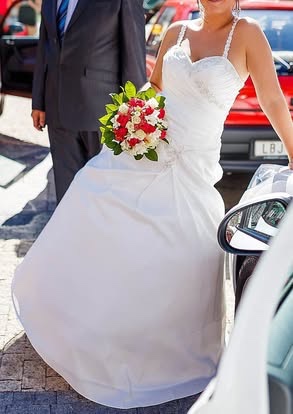Prodám krásné svatební šaty barvy ivory. Vzadu zapínání na zip, korálkové vyšívání, jemné řasení. Součástí je kruhová spodnička s obručí a odepínací ramínka. Koupené v salonu, původní cena 15000,-. Velikost 40. Vyčištěné v profesionální čistírně.