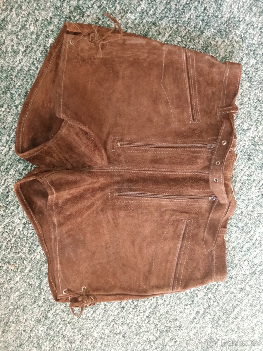 Kožené, pas 78 cm, lze i více stáhnout. Psaná vel 46