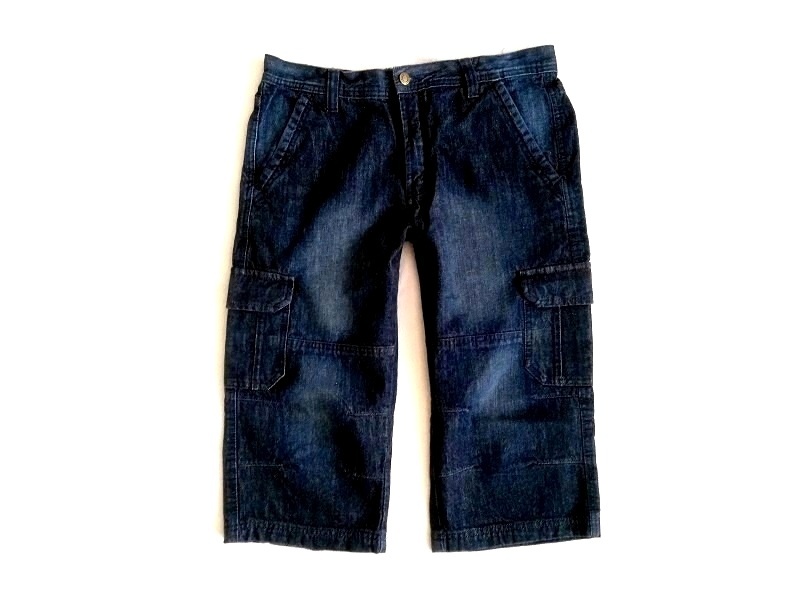 Prodám riflové šortky, velikost 32 (M). Šortky mají zapínání na knoflík a zip, úzce střižené nohavice s rovnou dolní partií a kapsy na nohavicích.