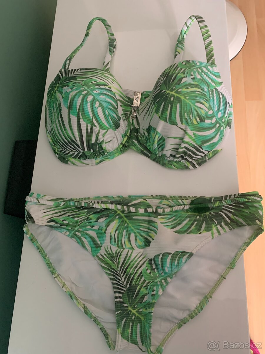 Krásné plavky Lechaton, nové, nenošené na koupání,pouze jednou na opalování,bez vady. Krásný vzor,ramínka se dají nosit normálně viz foto nebo odepnout za krk,kvalitní plavkovina. Velikost 85E vyztužené košíčky plavkové klahotky klasický střih velikost 44 Původní cena hodně vysoká, nyní pouze 799kč