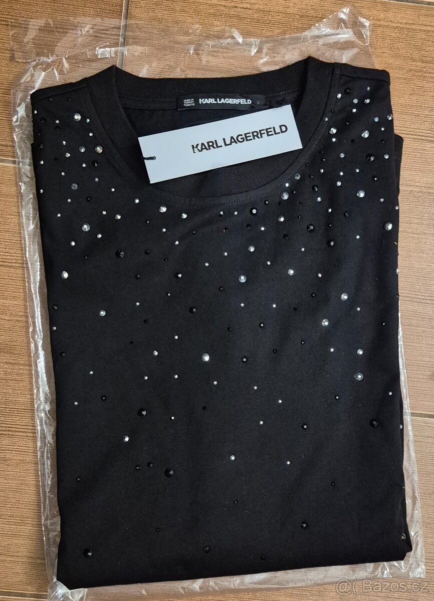 1) Tričko s kamínky Karl Lagerfeld, vel. L, nové - pouze vyzkoušené, 100% organická bavlna, cena 2200,-.