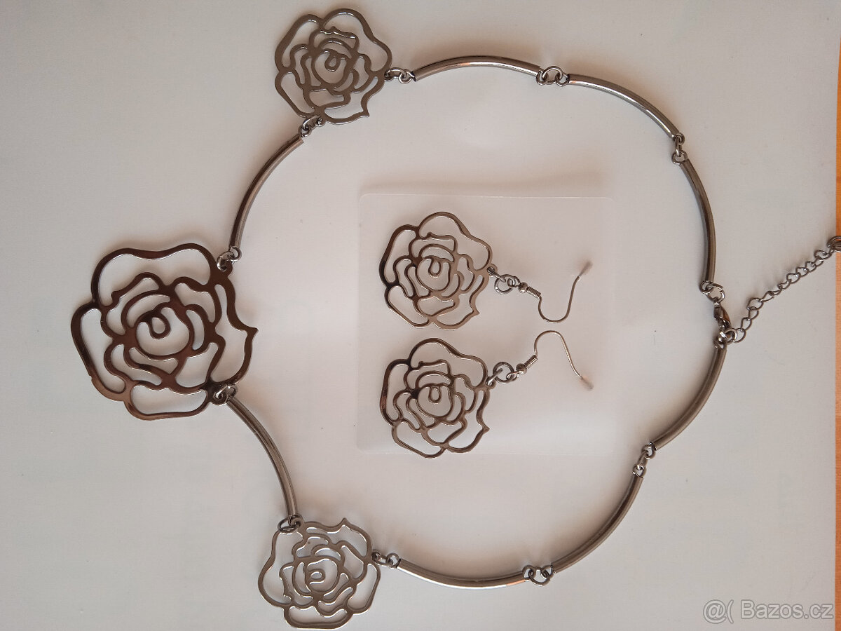 Prodám set náhrdelník a naušnice - růže z tmavého kovu, od Avonu, za 300,- Kč.